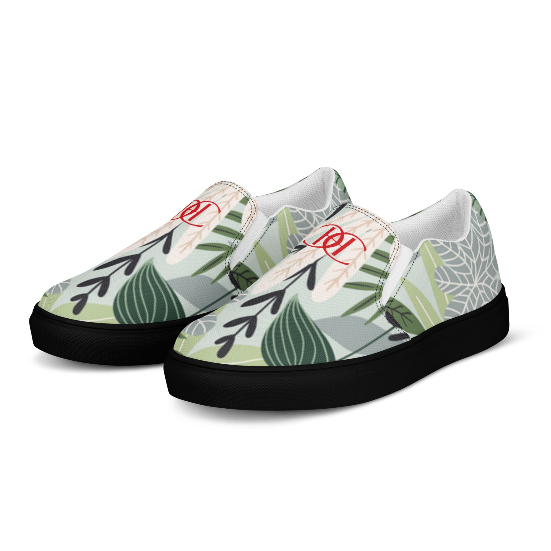 Step into nature with a cosmic twist – the Women’s Slip-On Canvas Shoes – Cosmic Leaves feature a fresh botanical pattern in soft greens and neutrals, contrasted with a bold red logo on the upper. Comfortable, stylish and easy to wear, these slip-ons come with removable soft insoles and EVA rubber soles for the perfect mix of function and fashion.